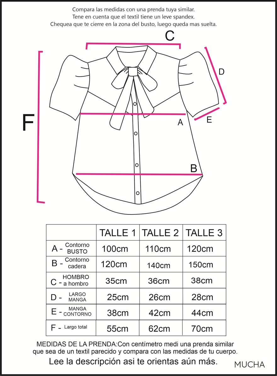 Medidas: Disponible en 3 talles, chequea el contorno de busto de cada talle para que te cierre, luego el resto cae en forma de A y talle a talle varia bastante el largo. Cualquier duda estamos para ayudarte.
