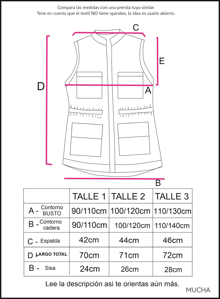 Disponible en 3 talles: Cheque el contorno de espalda mas que nada, es una prenda que se usa abierta más que cerrada.