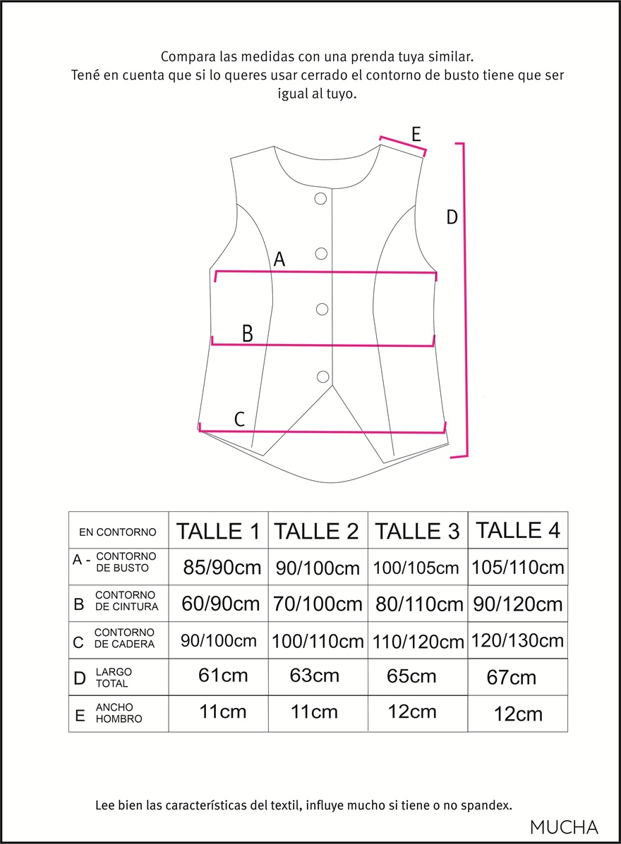 Medidas: Disponible en 4 talles, chequea tu contorno de busto, si eso esta ok el resto es molderia corte A y luego se ajusta en la espalda mediante los lazos. Chequea la tabla y cualquier cosa estamos para ayudarte.