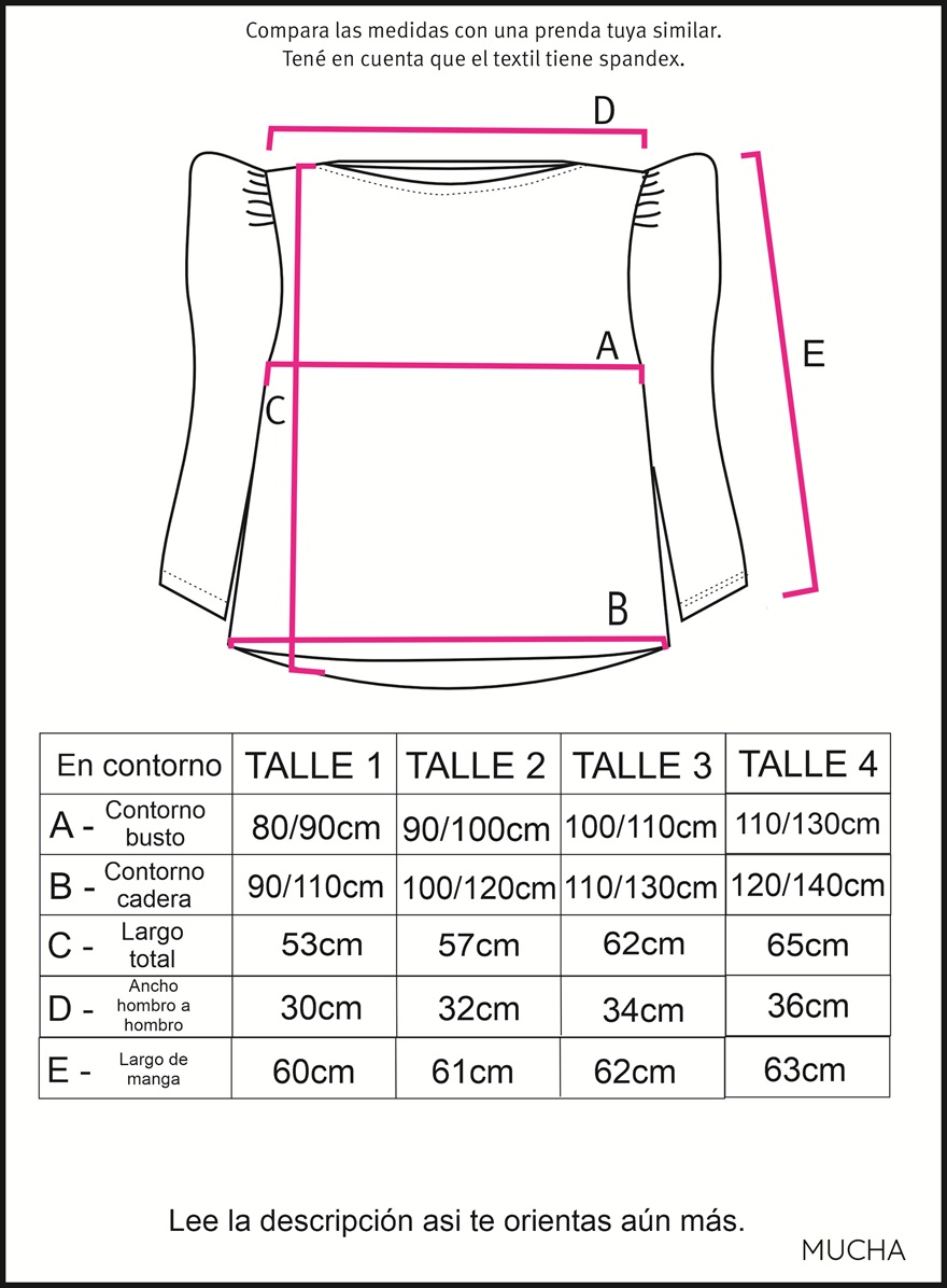 Medidas: Disponible en 4 talles, chequea el largo xq talle a talle varia bastante.